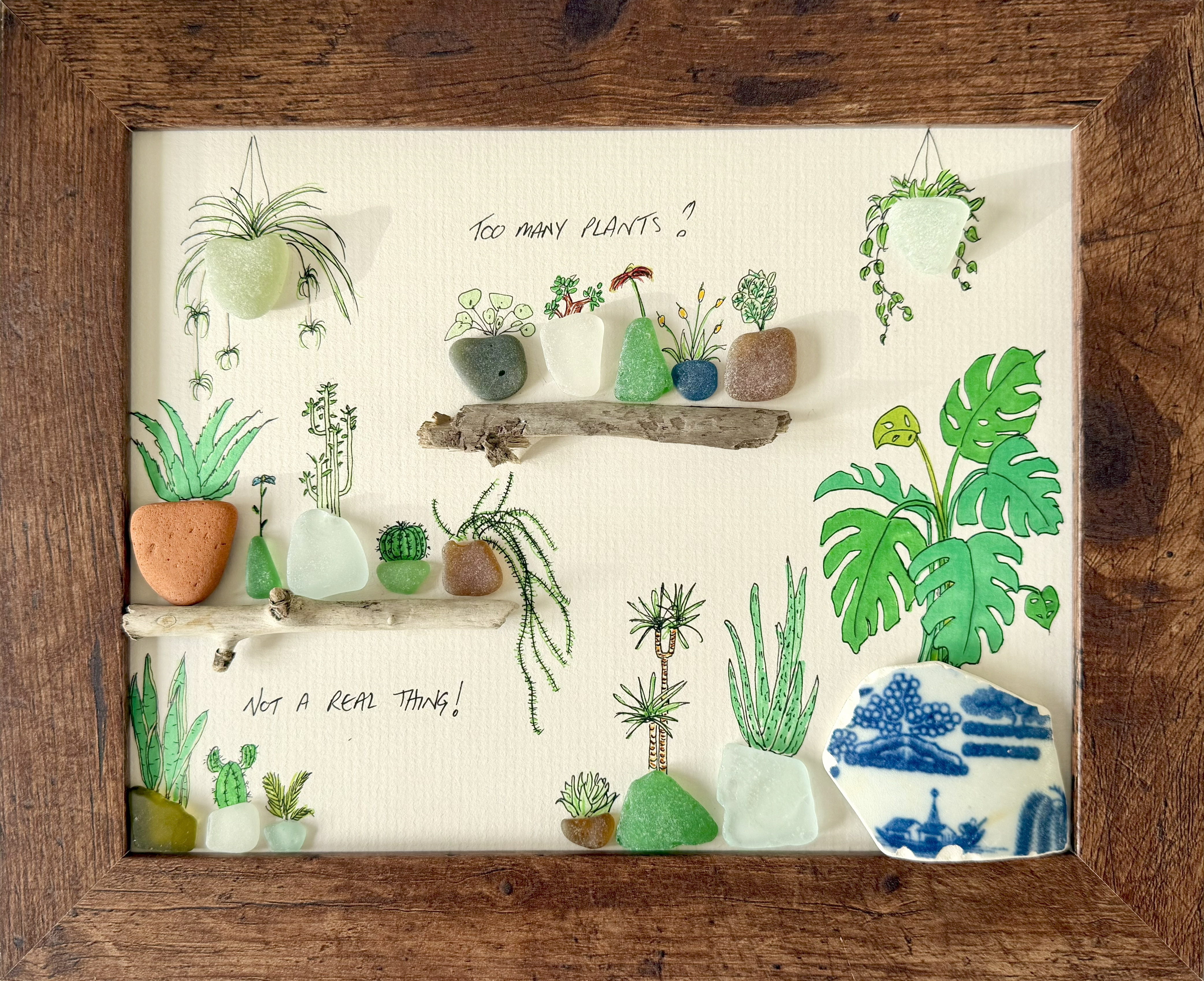 Driftwood and sea glass art from Cornwall